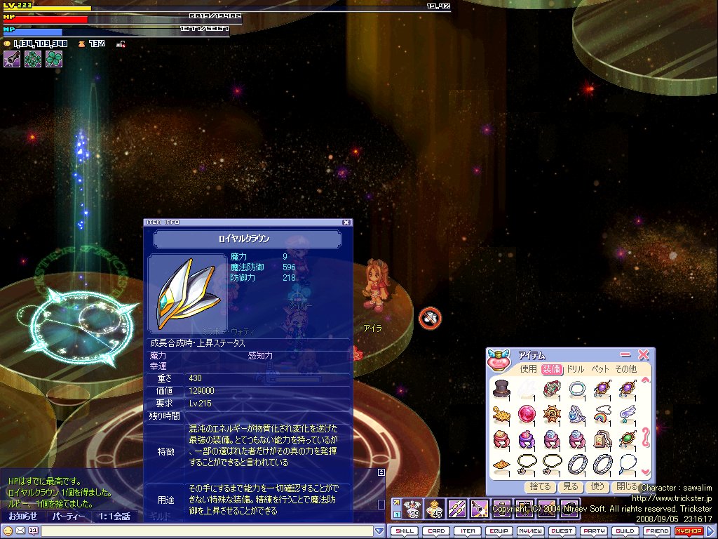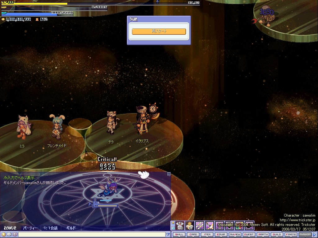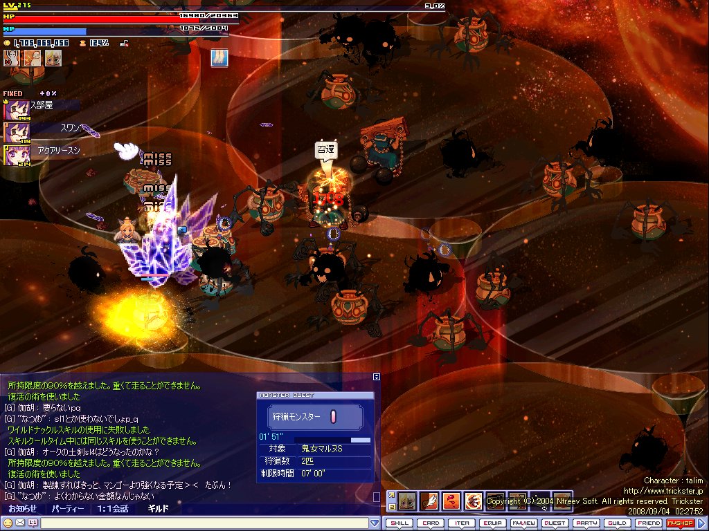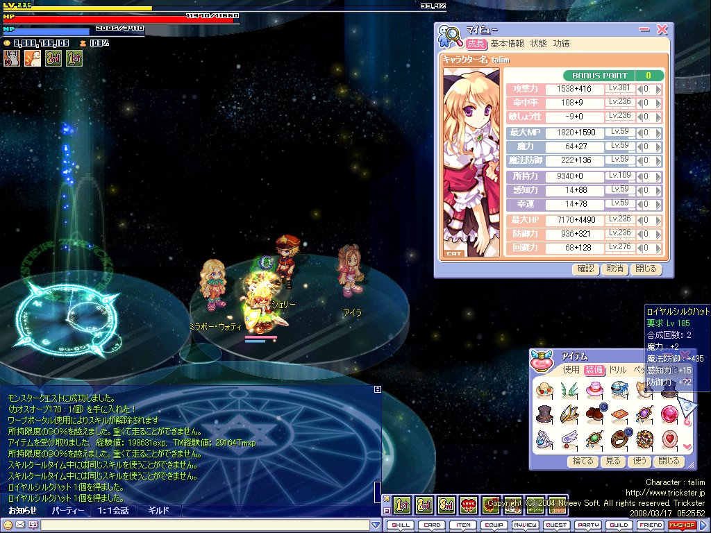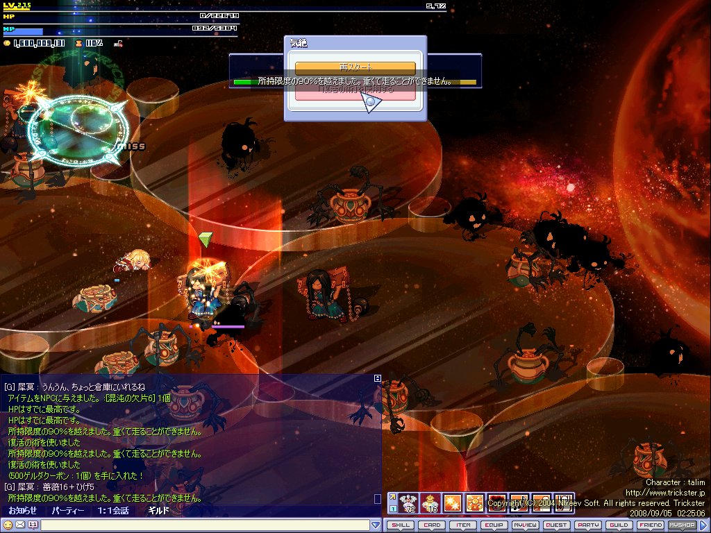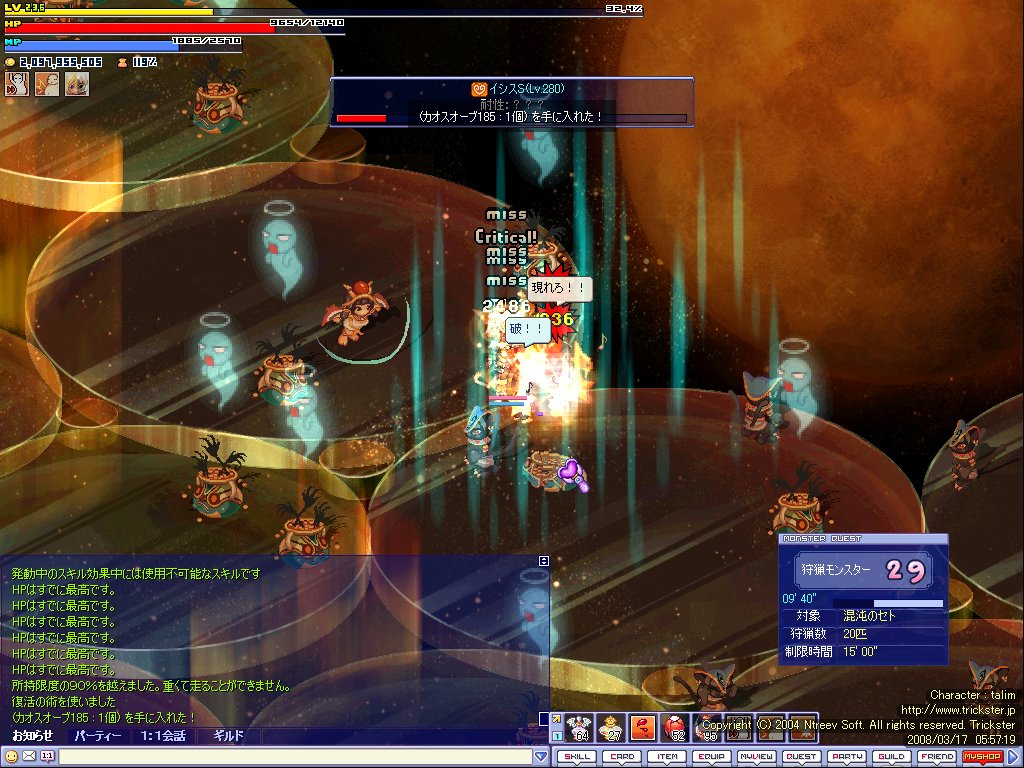 ナックルじゃなくてラッシュにしたのは堅いから追加ダメージが微々たるもんなのと、イシスにうったらバグ?でモーションが5秒後とかいったり、500k-ポンが先に直接ドロップしてきてるんだけどまだイシスがHP残ってて攻撃してきたりでわけわかんねーから、ラッシュでいいかなと。ラッシュだと距離離れててもすぐ発動できるし良さげ。