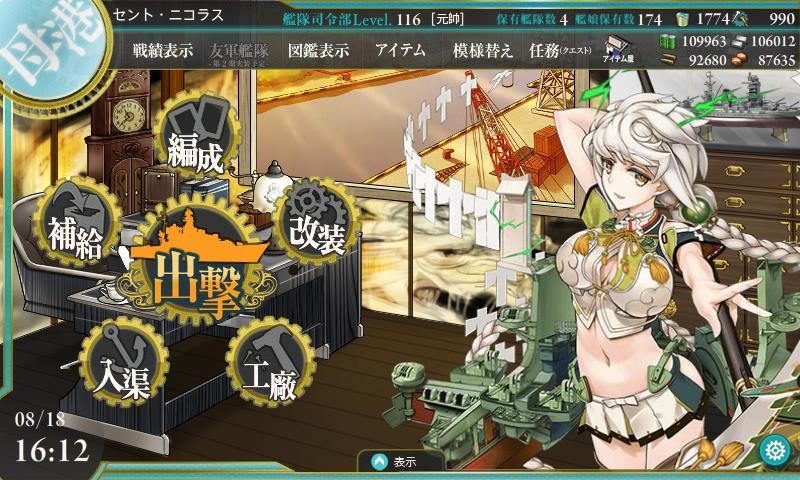 あ、そうだ書き忘れた、たいほーの4スロ目に江草入れてたんだけどボス戦で攻撃しませんでしたw3戦目までに8機とか全滅するっぽいんでここに攻撃機入れない方が良いみたい、制空優勢別にとれないし、他のスロット入れた方がいんじゃないかな。