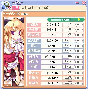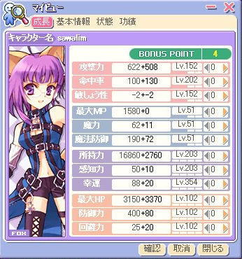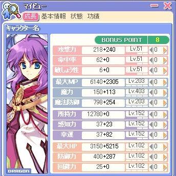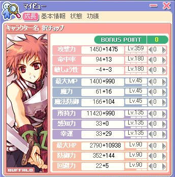 | Job:グラディエイター 初期ステ:4132 Level:180/194 Guild:Queen☆Rose 称号:ライトハンドチョップ 狩場:廃鉱区、テチ4 副業:コック |