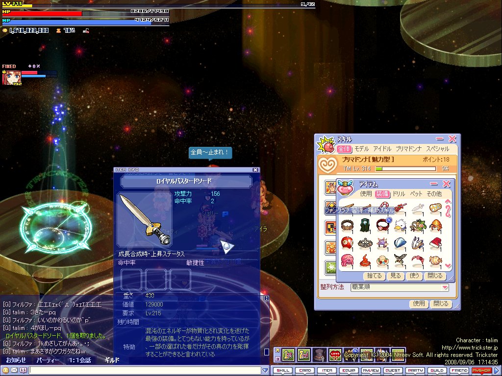 装備は火力とHP装備で一番大事なのが赤ポットが火山卵ってことだと思うw