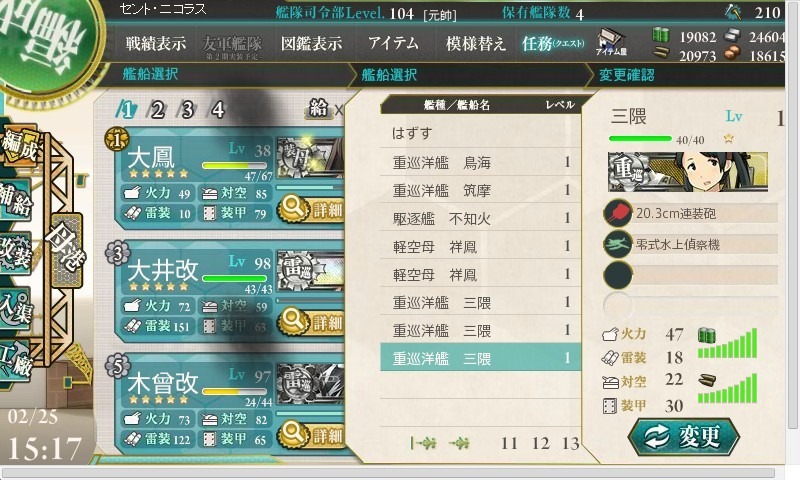 重2の一人は摩耶様確定で、もう一人は好みで足柄でなりました。