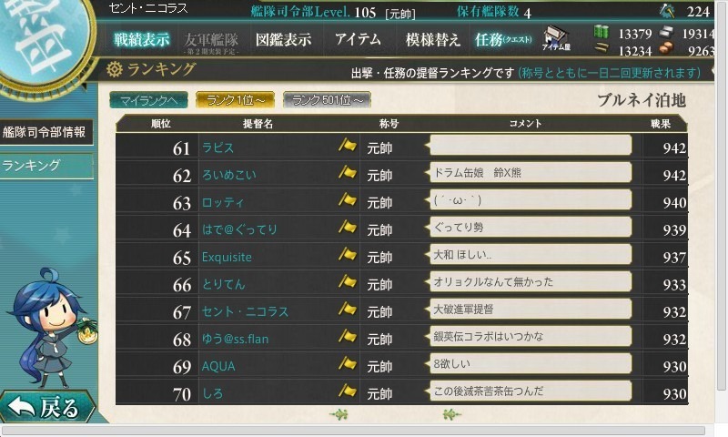 先週から始めて12勝目で初でした。その間8ちゃんが60から75レベになりました。