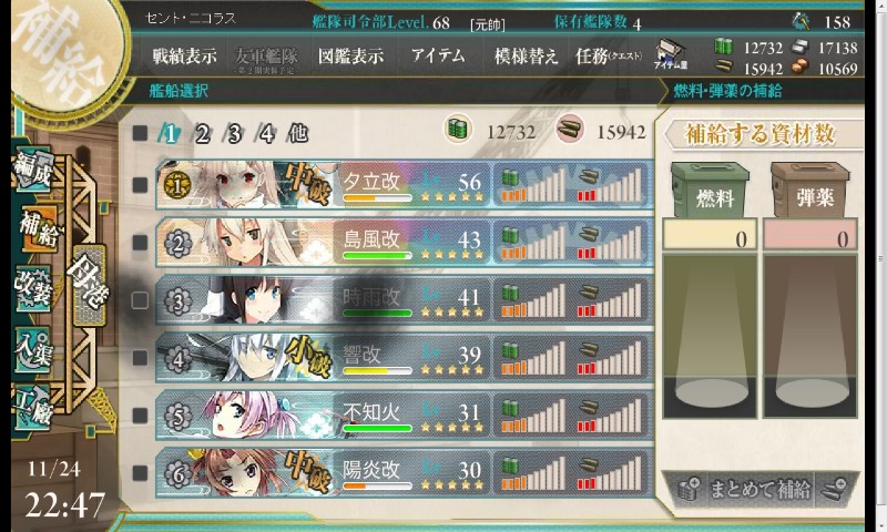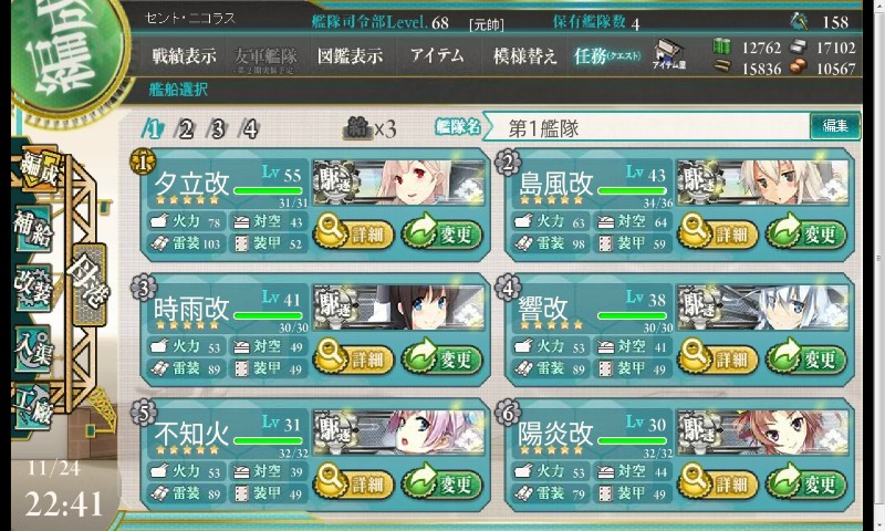 ので編成クエ全部終わった。