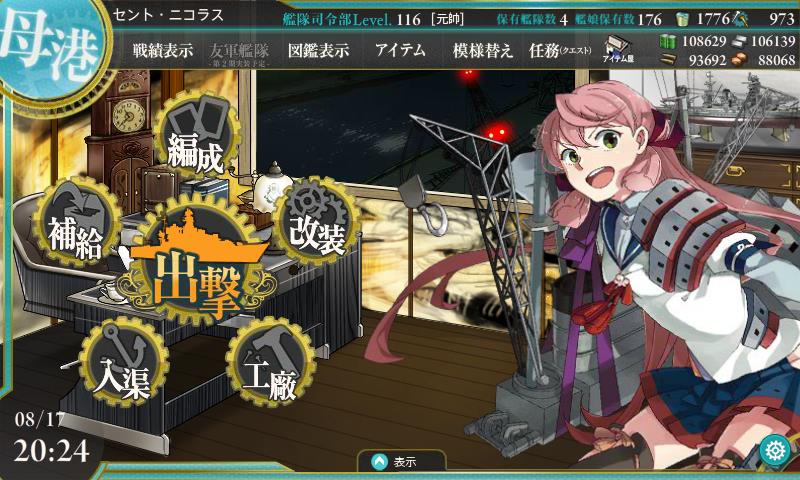 あ、そうだ書き忘れた、たいほーの4スロ目に江草入れてたんだけどボス戦で攻撃しませんでしたw3戦目までに8機とか全滅するっぽいんでここに攻撃機入れない方が良いみたい、制空優勢別にとれないし、他のスロット入れた方がいんじゃないかな。