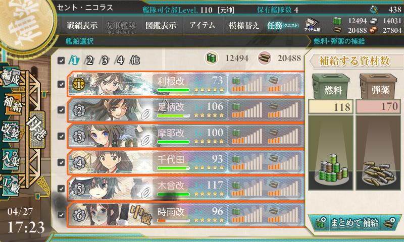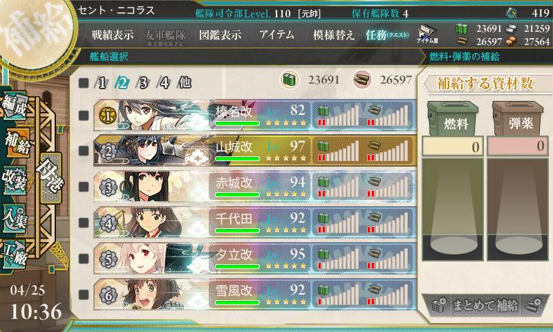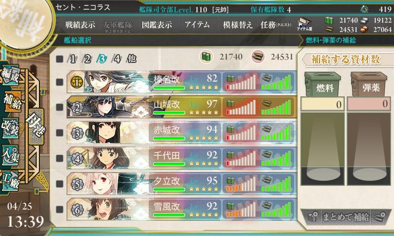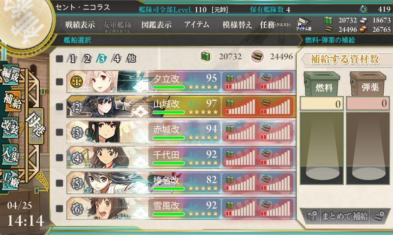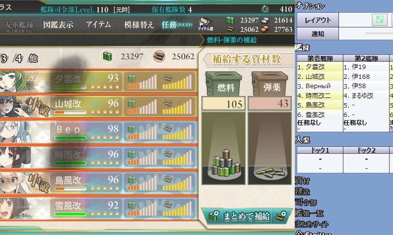 あと支援艦隊は駆逐の燃料がメモリ0になった、これ駆逐以外は1メモリ残ってるんでもっかい行けるじゃねーかw