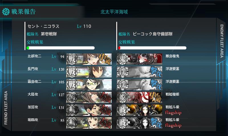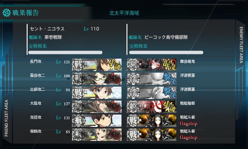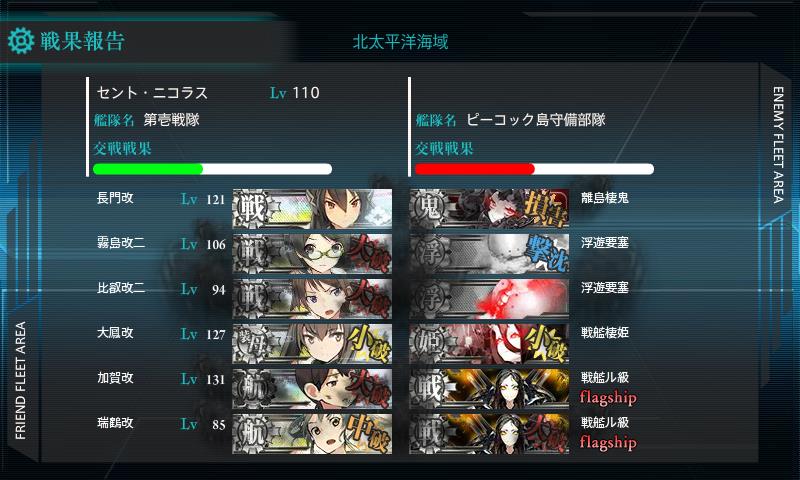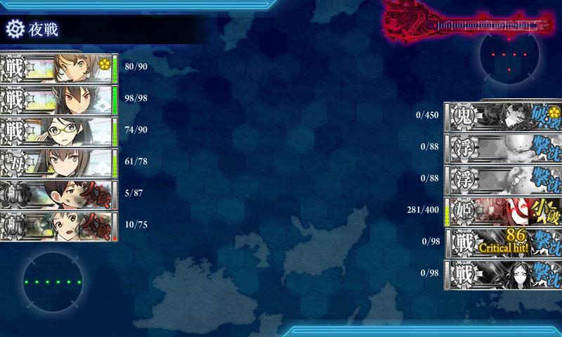 でも霧島が昼戦でボス小破まで殴ってくれたんで戦術的勝利やな><;